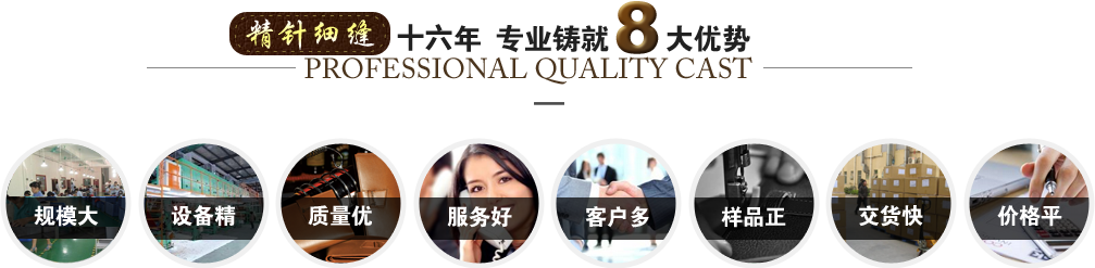 在激烈的市場(chǎng)競(jìng)爭(zhēng)中,產(chǎn)品的質(zhì)量要求極為重要,選擇一家規(guī)模宏大、管理現(xiàn)代化、生產(chǎn)設(shè)施完善、產(chǎn)品質(zhì)量嚴(yán)格控制的供應(yīng)商,將有助于您業(yè)務(wù)的更大發(fā)展。深圳市百億豐皮具有限公司是一家專(zhuān)業(yè)生產(chǎn)手袋,皮具,箱包的企業(yè)。自二零零六年成立以來(lái),經(jīng)過(guò)多年的開(kāi)拓與發(fā)展,已躍居為國(guó)內(nèi)規(guī)模最大的手袋,皮具,箱包制造商之一。公司擁有進(jìn)口三菱、兄弟牌電平車(chē)、同步車(chē)、高頭車(chē)、電腦車(chē)、特種車(chē)、雙針車(chē)、折邊機(jī)、鏟皮機(jī)、啤機(jī)等各種現(xiàn)代化最新設(shè)備。主要生產(chǎn)以下各類(lèi)產(chǎn)品...